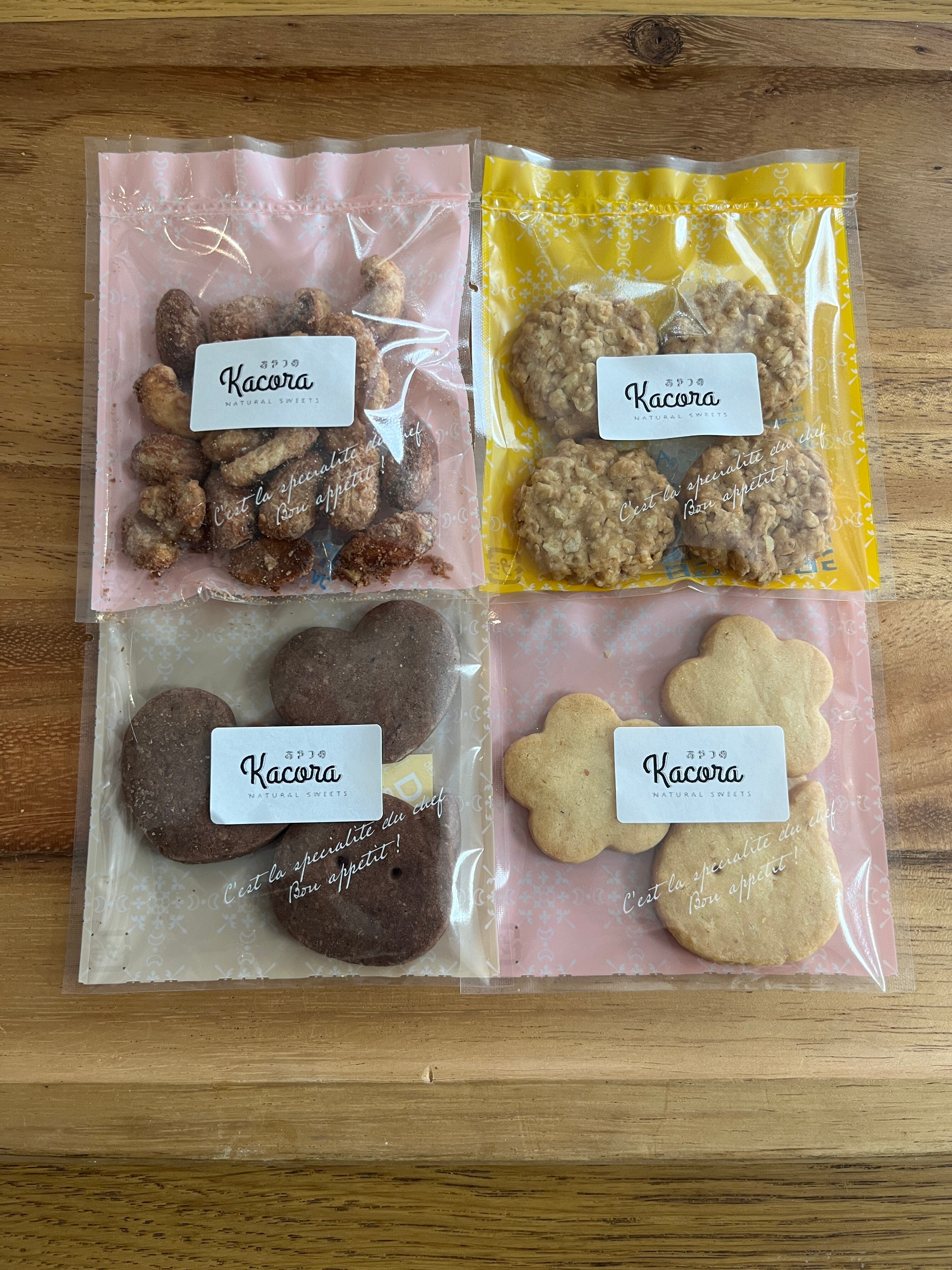 毎回ランダムに、グルテンフリークッキーを3〜4種を詰め合わせた、ヘルシーで美味しいクッキーのセットです。これらのクッキーはすべて手作りで、卵、乳、小麦を使用せずに、甘さは有機メープルシロップを使用しています